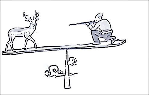 18、(1)示例:图中有一高耸云端的支架,一个人和一头鹿分别位于支架的两端,那个人正举枪瞄准鹿,准备射击。