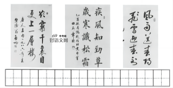 2、从下图中选择你最喜欢的一幅字,将正文内容用简化字工整地写在田字格中。(不加标点)(2分)
