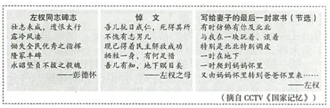 3、同学们分享了左权将军的生平事迹以及相关的碑志、悼文及家书。请参考示例,以“左权将军是一个好将领/好父亲”为开头,写下你的感言。(2分)示例:左权将军是一个好儿子,他抗日成仁,是令母亲骄傲的有志男儿。