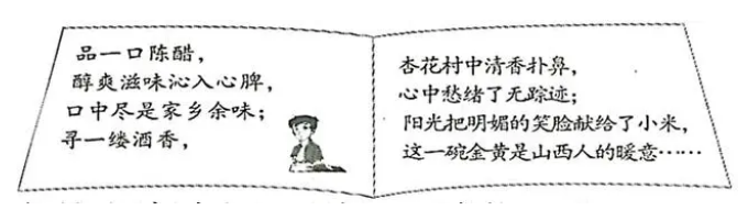 4、2023年5月,上面这则赞美山西特产的文案在网上刷屏。请你另选一种山西美食或特产,写一句话为它做宣传。(2分)