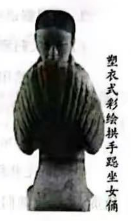 【链接材料】“姗姗”出土于汉景帝阳陵。其名取自《汉书·外戚传上》:“立而望之,偏何姗姗其来迟!”她身穿交领右衽深衣,双手相交,以袖微微遮面,气质端庄典雅,举手投足之间尽显汉代服饰之美和礼仪姿态之雅。
