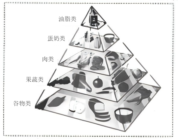 中国居民的“平衡膳食宝塔”(从“塔基”到“塔顶”表示五类食物的大致比例)